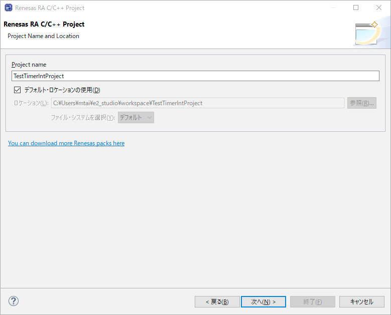 ここでは「TestTimerIntProject」とした。